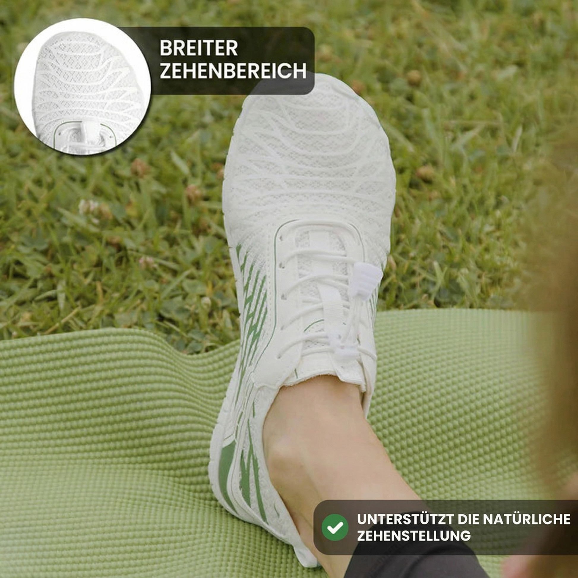 ✓ Bessere Durchblutung — Weniger Kribbeln, weniger Taubheitsgefühl. Der direkte Bodenkontakt bringt die Durchblutung wieder in Gang — genau da, wo du es spürst.